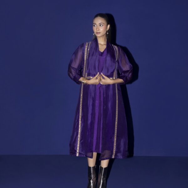 Embroidered vertical horixontal stripe jacket with contrast dress